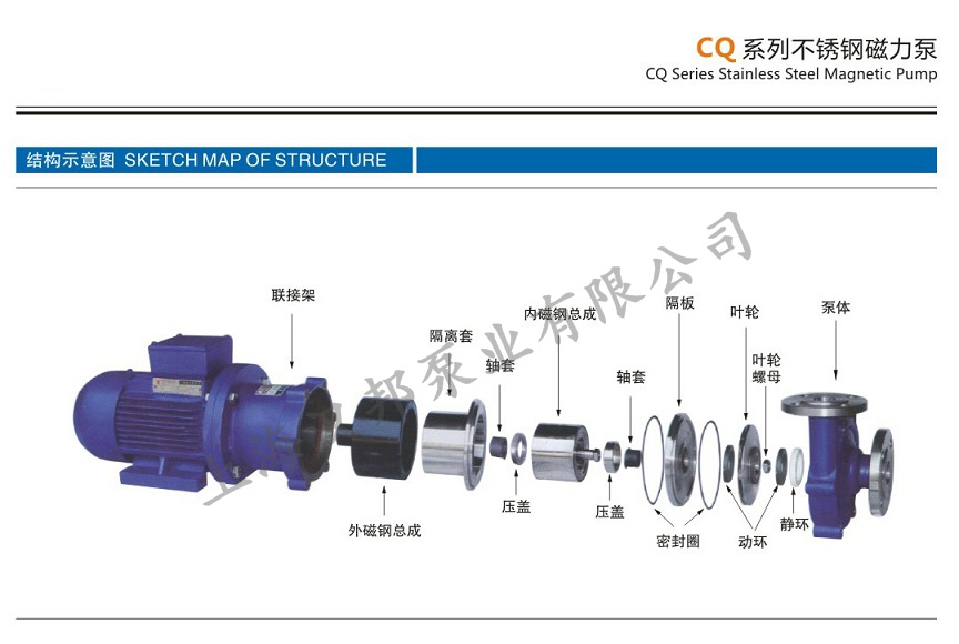CQ不銹鋼磁力泵(簡稱:磁力泵)是應(yīng)用現(xiàn)代題力學(xué)原理,利用水磁體的磁力傳動實現(xiàn)扭矩的無接觸傳通的一種新型泵,也就是電機帶動外轉(zhuǎn)子(即外磁鋼)總成旋轉(zhuǎn)時,通過磁場作用磁力線量隔離套帶動內(nèi)轉(zhuǎn)子(即內(nèi)磁鋼)總成和葉輪同步旋轉(zhuǎn),由于介質(zhì)封閉在靜止的隔離套內(nèi),從雨送到泄溫抽送介質(zhì)的目的,徹底解決了機械傳動泵的軸封泄漏,而設(shè)計的全密封、無泄、無污染能的工業(yè)用泵,創(chuàng)造“無泄車間”、“無泄漏工廠”,實現(xiàn)安全、文明生產(chǎn)。